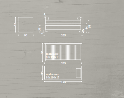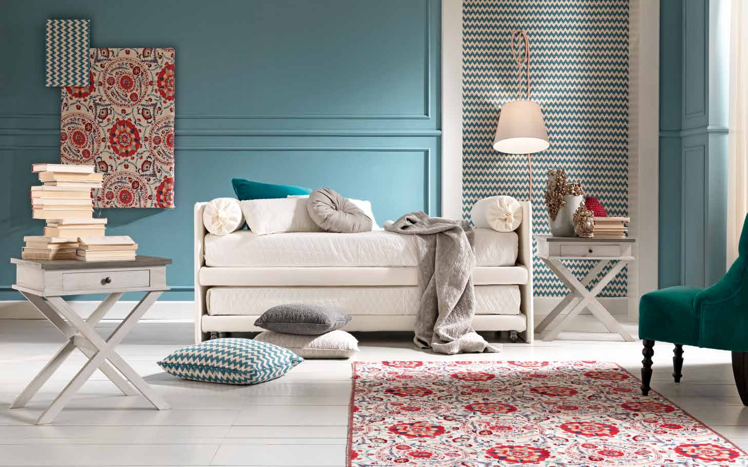 Версии: готовая кровать с деревянной решеткой и второй выдвижная кровать с механизмом открывания. диван в комплекте с 2 пружинными матрасами 13 см. Структура: древесина и ее производные. Обивка: полиуретан расширен до дифференцированных размеров и качества, волокна полиэстер, подушка из гусиного пуха. Характеристики: полностью съемный; ролики и одеяло серии. Свободный в версии с сетью 80X190.