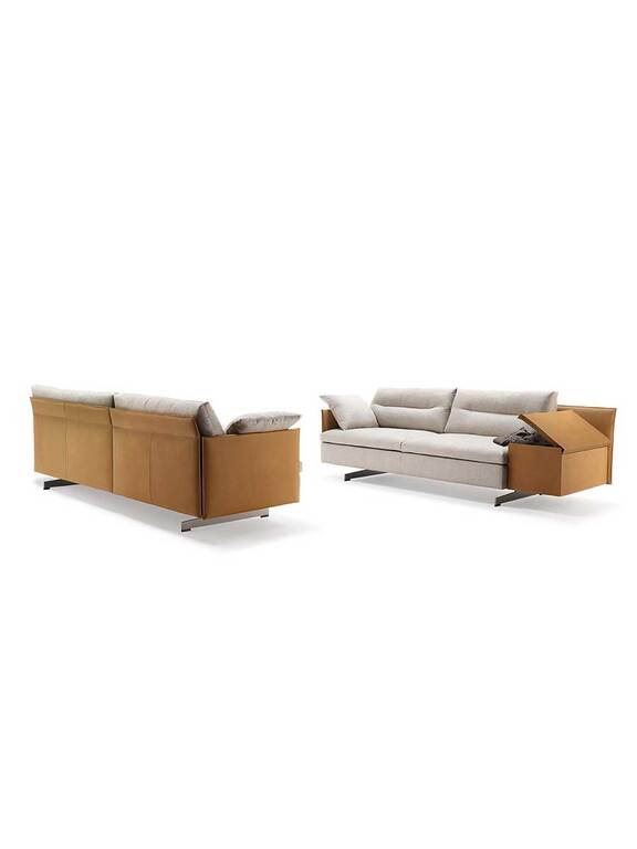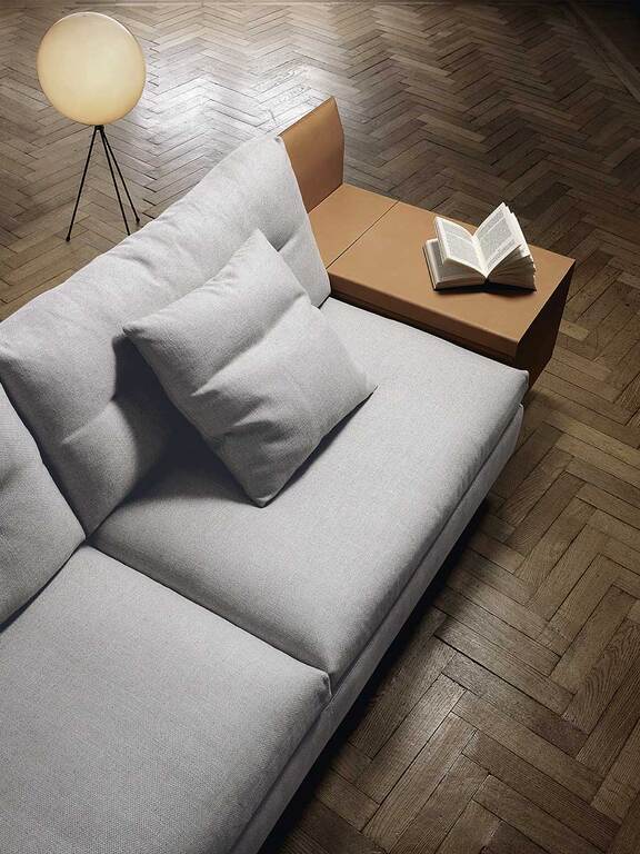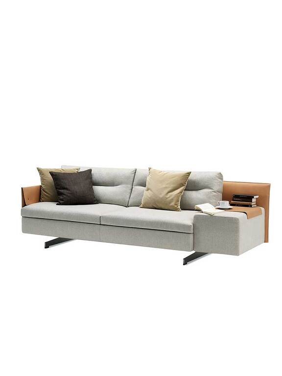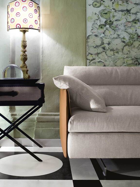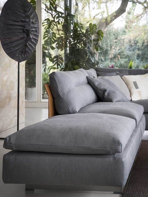 GranTorino — это диван, которому удается сочетать компактные, хорошо выверенные объемы, которые сводят к минимуму его габаритные размеры, с чрезвычайно удобными сиденьями. Конструкция выполнена из металлической трубы с ткаными эластичными ремнями. Спинки и подлокотники изготовлены из березовой фанеры. Сиденье обито пенополиуретаном различной плотности, не содержащим ХФУ, и прессованным войлоком. Подушки спинки набиты гусиным пухом и имеют отдельные горизонтальные полости, что обеспечивает разнообразный эргономический комфорт. Ножки выполнены из алюминия титанового цвета. Диван GranTorino может быть полностью обит кожей Pelle Frau® или в вариантах, сочетающих в себе различные материалы.