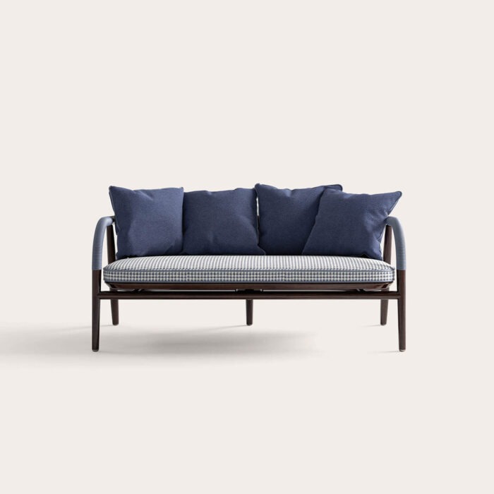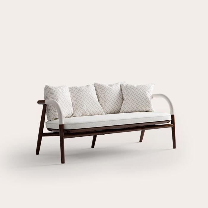 Мягкий диван с тканью и кожей. Деревянная конструкция.