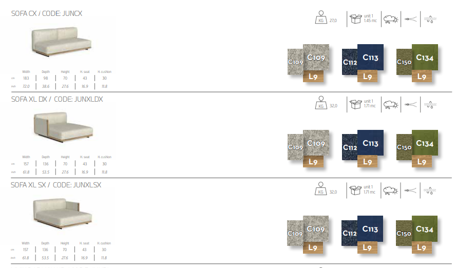 Модульный диван Jun обладает несравненной универсальностью, сочетая модульные элементы, которые соответствуют любому пространству и стилю. Прочная и естественная конструкция дополняется мягкими сиденьями из ткани букле, которые полностью снимаются, придавая дивану современную и уютную элегантность. Модули легко комбинируются, что позволяет создавать индивидуальные конфигурации, а приподнятые ножки придают им легкость. Модульный диван Jun, идеально подходящий для динамичных и изысканных условий на открытом воздухе, является идеальным решением для проведения моментов расслабления в абсолютном стиле.