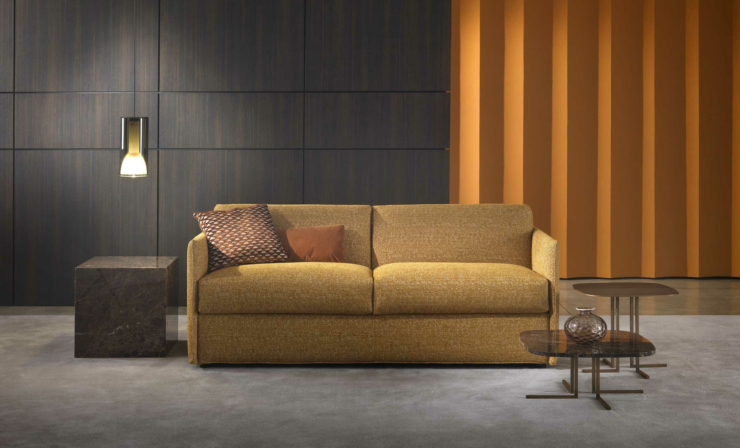 Особого внимания заслуживает запатентованный механизм трансформации, разработанный инженерами фабрики. Он позволяет одним плавным движением превратить диван в просторную кровать, сохраняя безупречный вид подушек. Это решение — результат многолетних исследований и стремления к совершенству, которое отличает Giulio Marelli.
