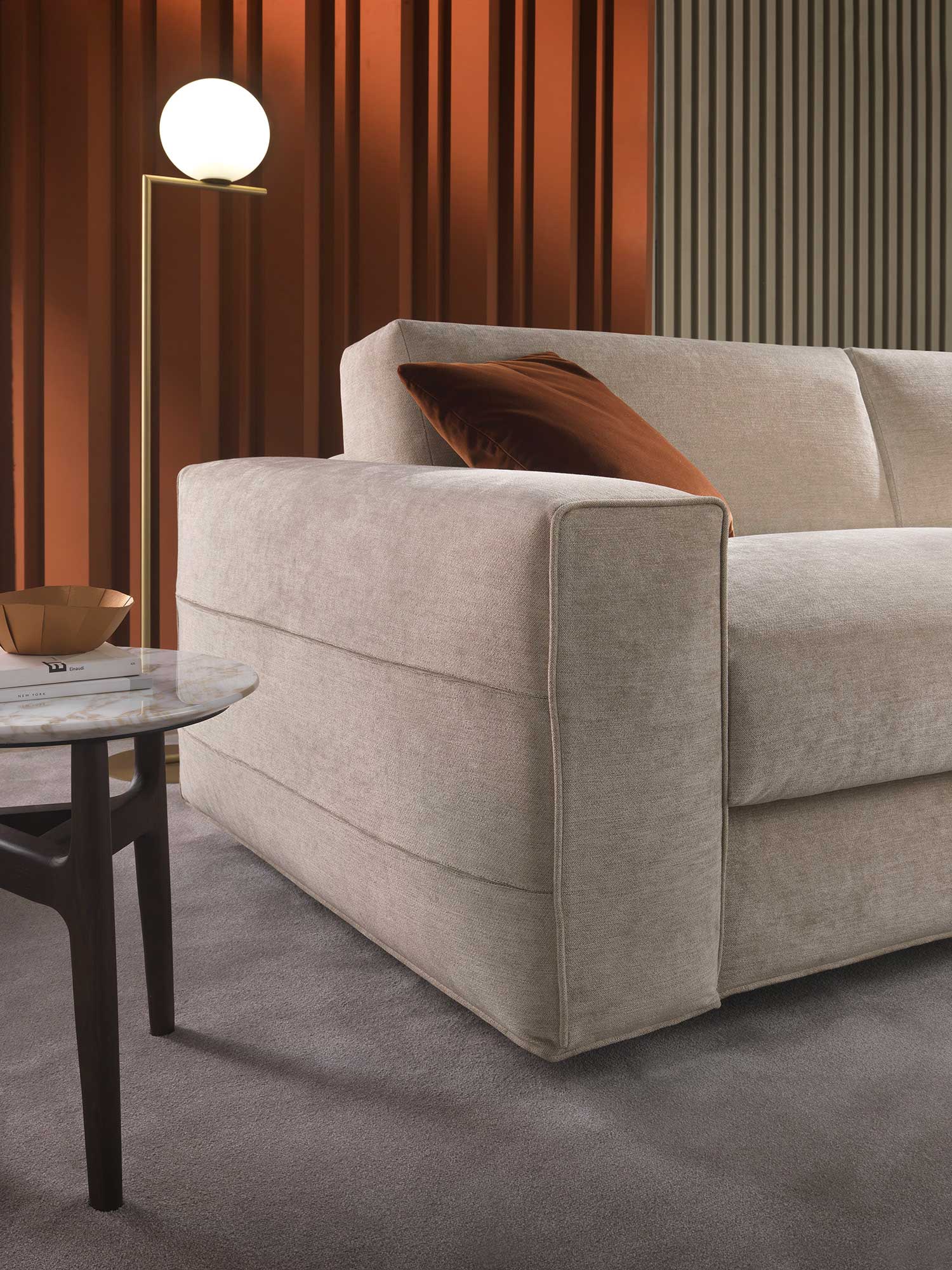 Запатентованный механизм трансформации — главное преимущество Demon. Система позволяет превратить диван в полноценную кровать одним движением, без необходимости снимать подушки. Это решение делает модель идеальной для ежедневного использования, сочетая в себе легкость эксплуатации и безупречную функциональность. Итальянская инженерная мысль здесь служит одной цели — вашему комфорту.