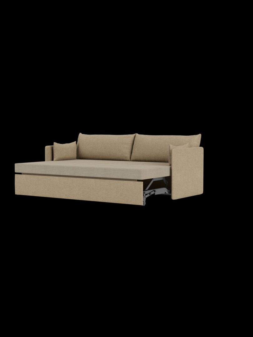 Универсальность лежит в основе раскладного дивана-кровати, который может превращаться из элегантного дивана в удобную кровать. Он идеально подходит для размещения гостей или увеличения пространства в многофункциональных помещениях и легко адаптируется к меняющимся потребностям. Сочетая в себе поддержку и мягкость, дизайн воплощает простоту благодаря чистому, сдержанному силуэту, созданному на основе набора парадоксов: солидный, но изящный внешний вид, архитектурный, но привлекательный и непринужденный.