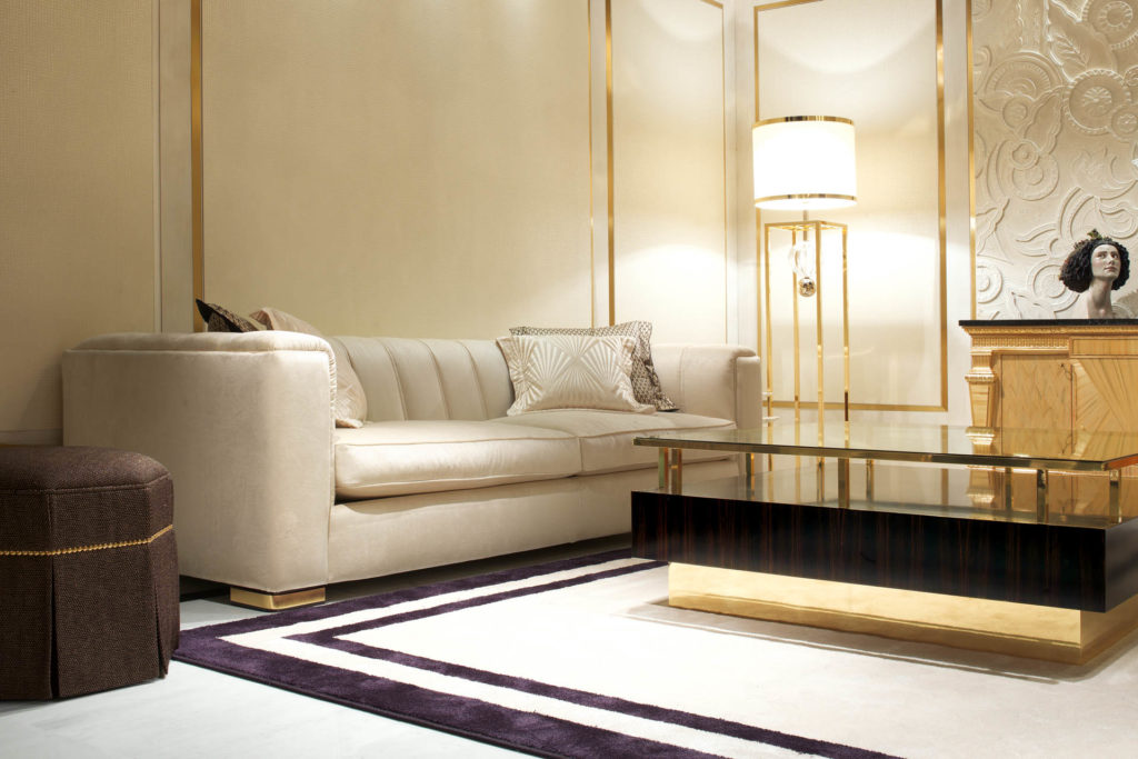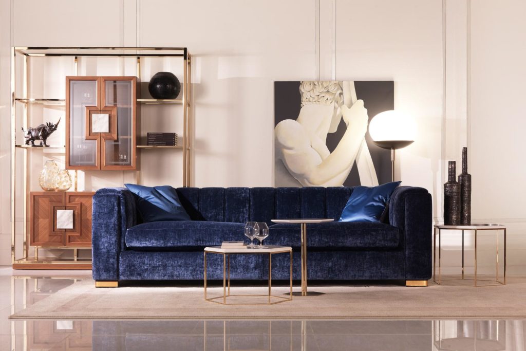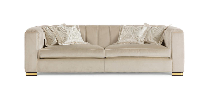 Диван с линейным и элегантным дизайном, икона современной коллекции, украшенная ручной вышивкой на спинке и изысканными материалами. Доступен в версии 3-местный, 2-местный, кресло с двойным или одним подлокотником, пуфик и как секционный угловой диван