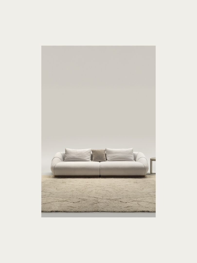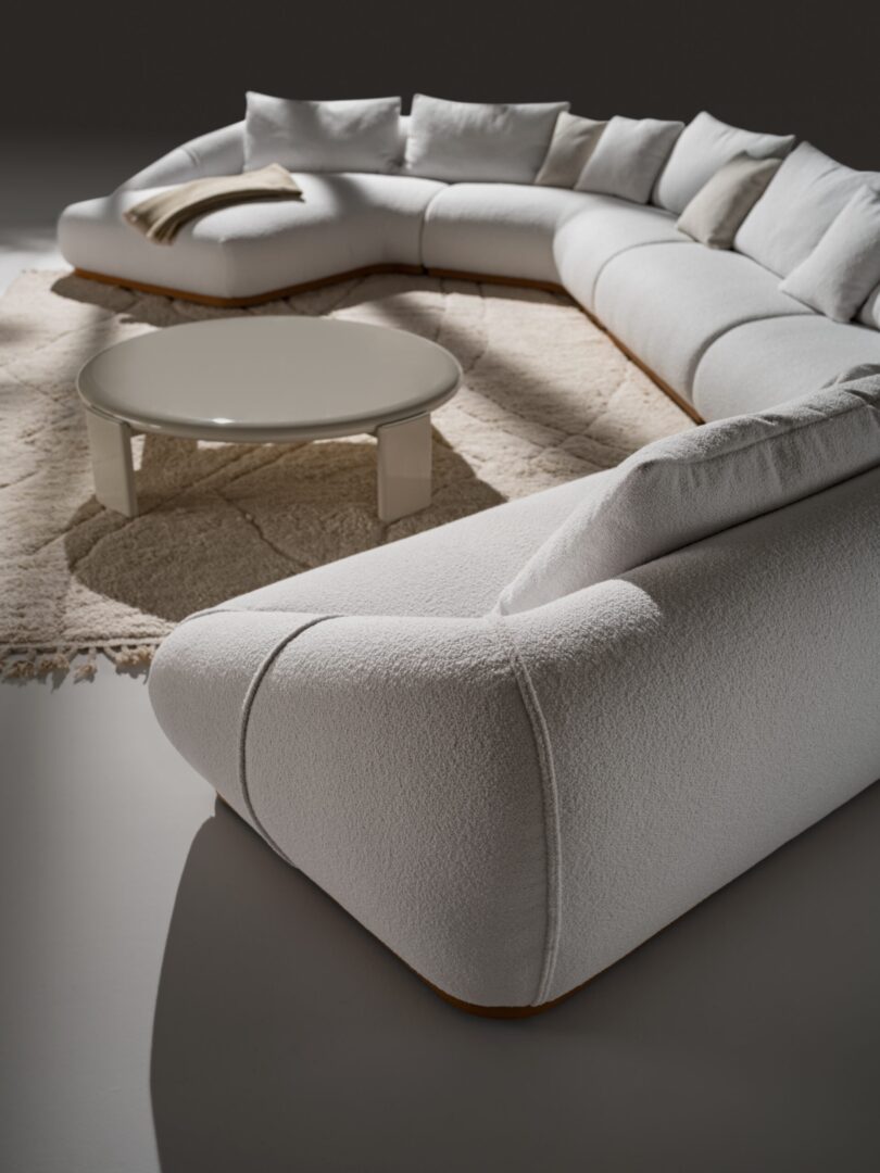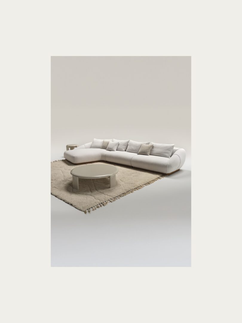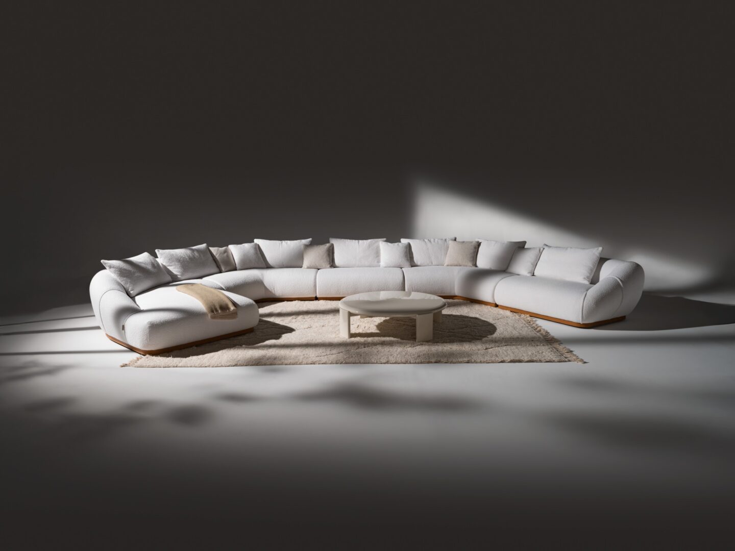 Мягкие линии и щедрые объемы оживляют Манилу, секционный диван с изысканным сценическим присутствием. Изогнутая структура создает ощущение объятий и праздничности, а открытая деревянная основа придает тепло и легкость.