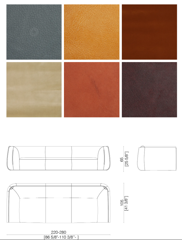 Обивочный диван, доступный в двух или трехместном варианте, обтянутый шитьем из кожи, бархата или ткани. Снабжен ножками.