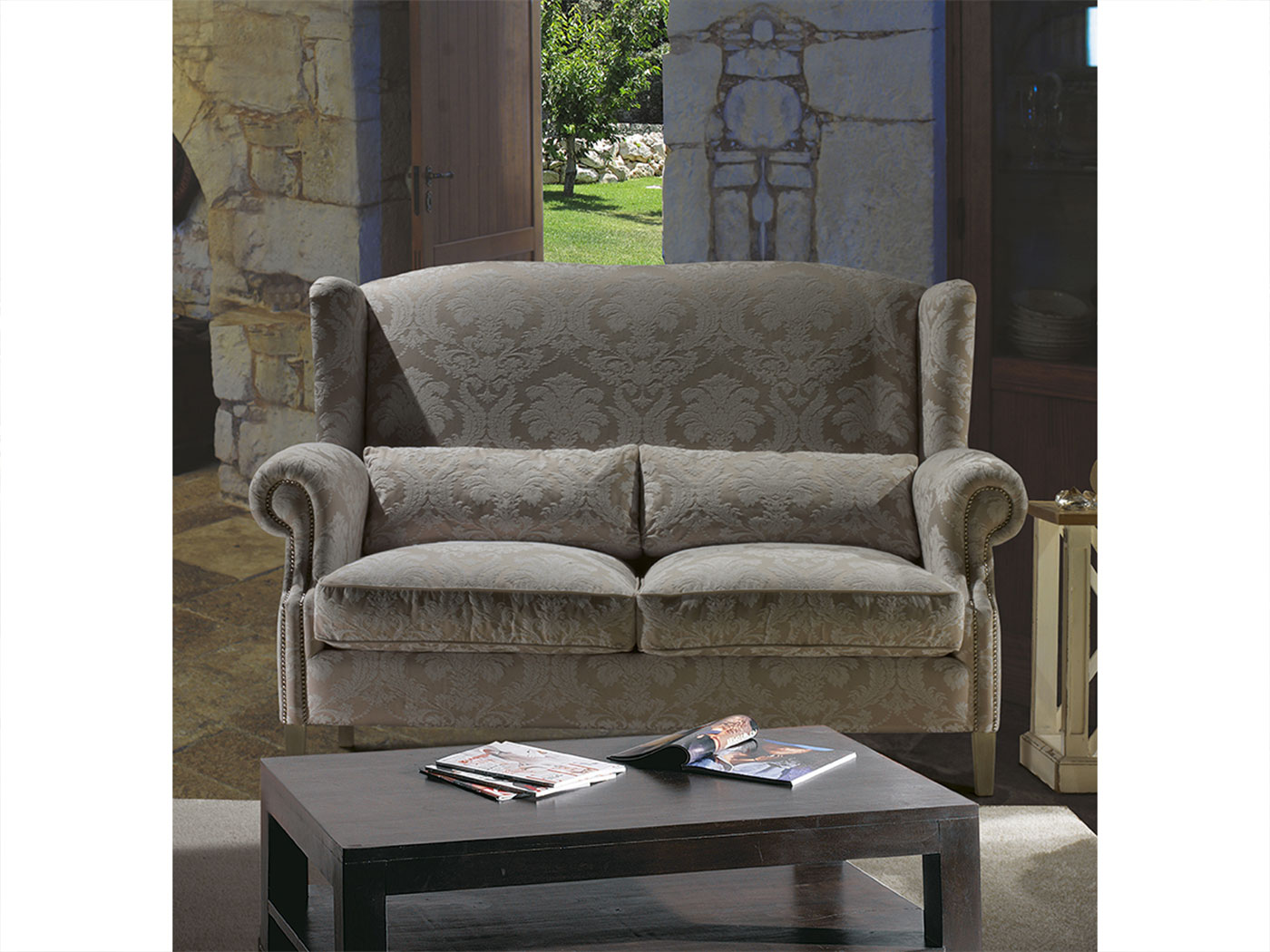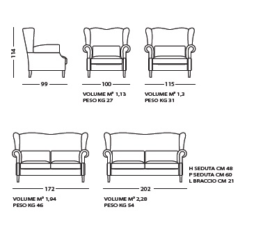 Версии: кресло, twin chair, 2-местный и 3-местный диван. Структура: дерево и его производные, высокие перекрестные эластичные ремни resistenza.Il поддержка сиденья может поставляться с винтовыми пружинами за дополнительную плату. Набивка: пенополиуретан с различными размерами и качеством, полиэфирные волокна. По запросу обивка сиденья из гусиного пуха. Особенности: открытые ноги, стандартные подставки для ног.