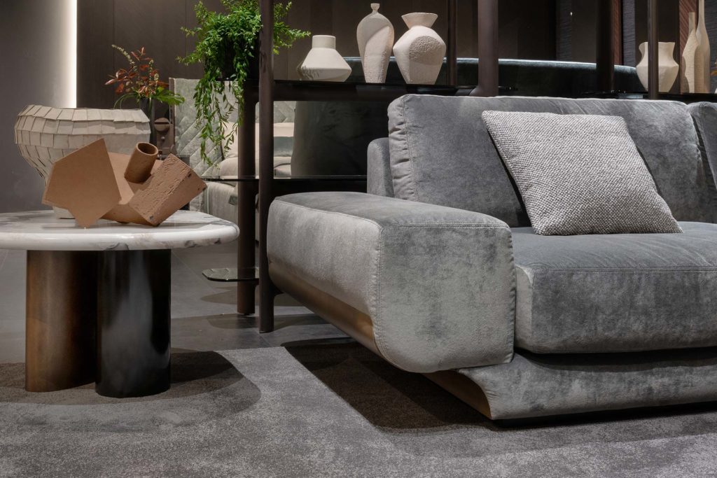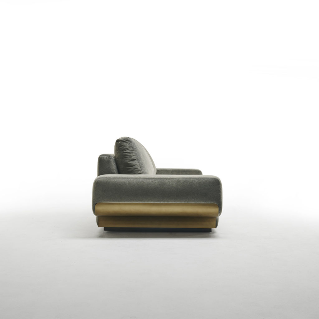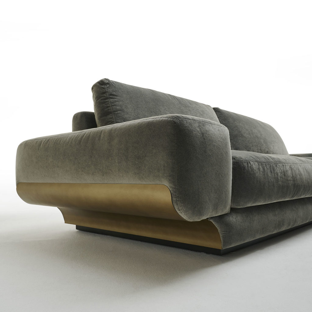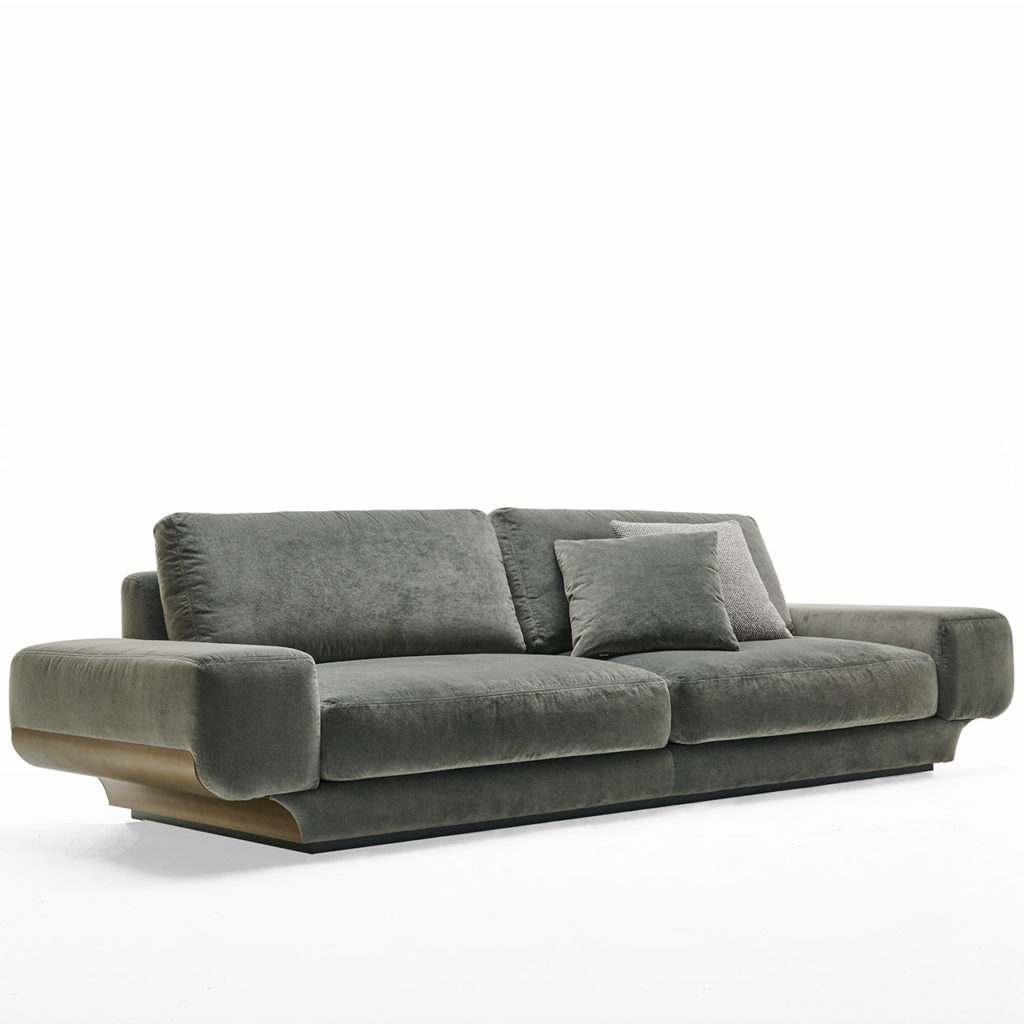 MILO-это новая Moderna модель дивана из коллекции NEXT, большие размеры, но хорошо пропорциональные, усиленные декоративными элементами из алюминия, которые подчеркивают пышную форму боковин и подлокотников. Комплект включает в себя 2-местный диван, кресло и пуфик в координации.