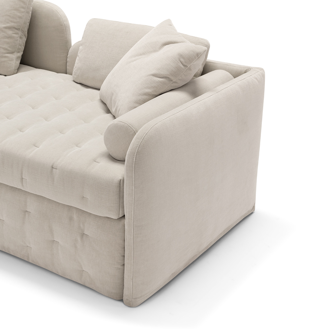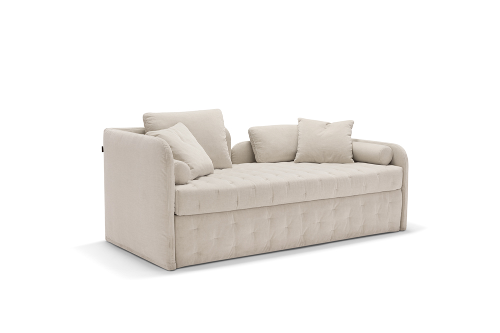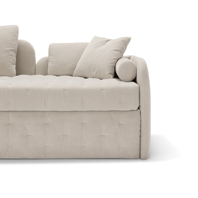 Модель Naomy впечатляет своей продуманной конструкцией: подлокотники и плечевые ремни доступны в двух высотах, что позволяет создать идеальное сочетание для вашего пространства. Дополненный мягкими подушками из гусиного пуха и стильными цилиндрическими акцентами, диван притягивает взгляды и обещает невероятный комфорт. Но его главная особенность — превращение в двуспальную кровать благодаря выдвижной сетке, которая легко активируется одним движением.