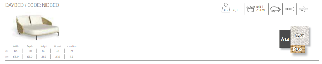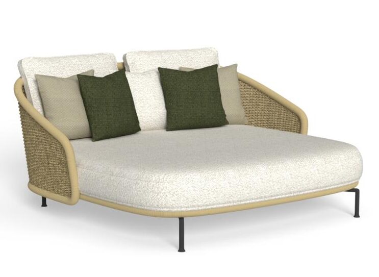 Кушетка из коллекции Nido отличается простой, но универсальной конструкцией, которая адаптируется к различным условиям. Плетеная спинка в стиле wicker придает ей мягкую и привлекательную форму. Подушки вместе со спинкой, которая трансформируется в подлокотник, окутывают сидящих, создавая уголок комфорта и умиротворения. Вдохновленный идеей гнездышка, этот продукт приглашает вас насладиться моментами расслабления в уютном и защищенном убежище.