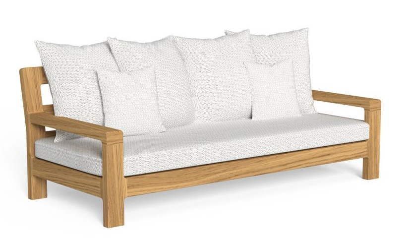 3-местный диван Oliver выражает подлинную связь с природой благодаря массивной деревянной конструкции, которая подчеркивает изысканную текстуру тикового дерева. Дизайн этого предмета мебели характеризуется чередованием твердых и пустотных поверхностей, которые объединяют стенки и подлокотники в уникальную композицию. В эту архитектуру форм вставлены мягкие белые подушки теплых тонов, которые придают гостиной на открытом воздухе более уютную атмосферу. Идеальное решение для создания зоны отдыха в саду, которая обеспечивает комфорт и безопасность.