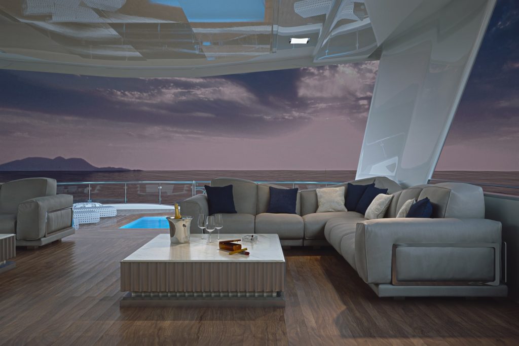 Угловой модульный диван в современном стиле со спинкой с запоминающимся дизайном, напоминающим морские волны. По запросу Орион также доступен в наружной версии.