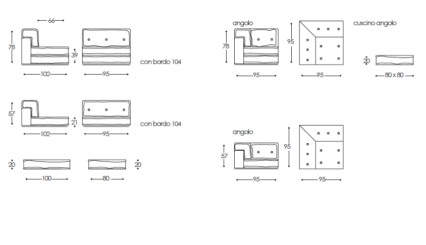 Версии: модульные. Обивка: в пенополиуретан по высоте и качеству дифференцированные, полиэфирные волокна. Характеристики: доступен в версии с сиденьем низкий h см 21 или с сиденьем высокий h см 39