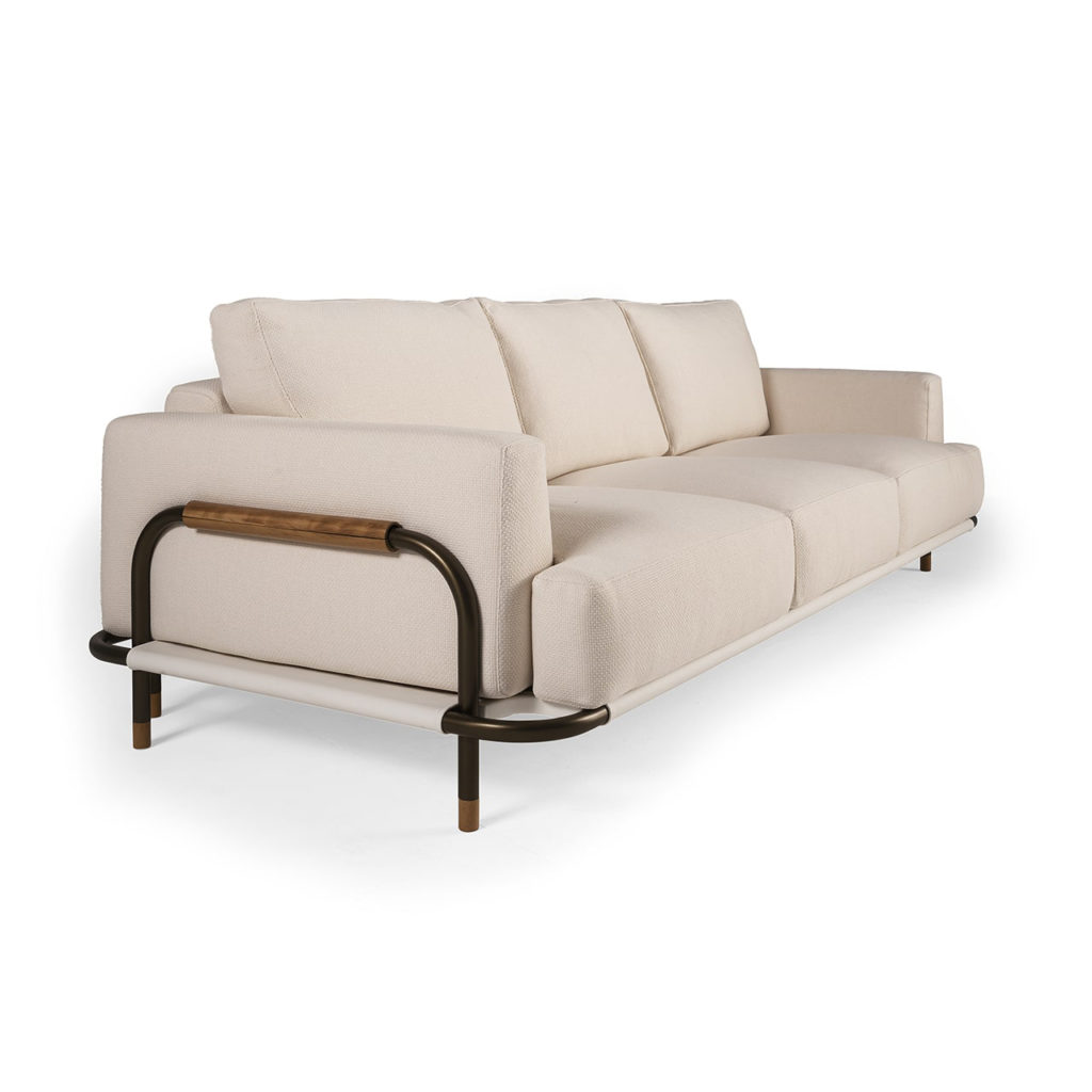 Moderna-это современный дизайн гостиной, который состоит из двухместного и трехместного кресла и дивана. Moderna Remastered диван и кресло имеют бронзовую металлическую раму, обтянутые кожей трубчатые, массивную деревянную бочку и подушки для спины и сиденья из гусиного пуха с добавлением недеформируемого пенополиуретана.