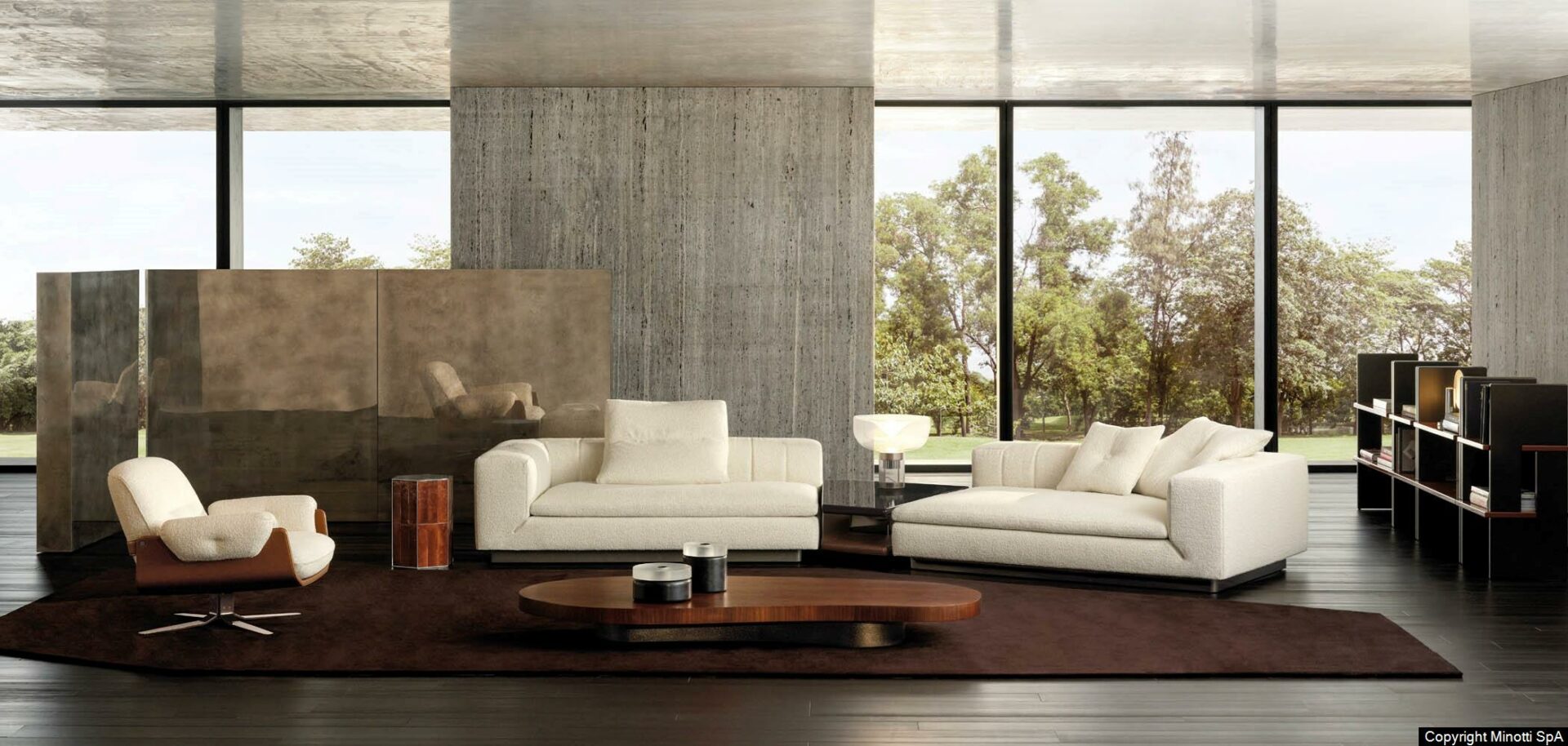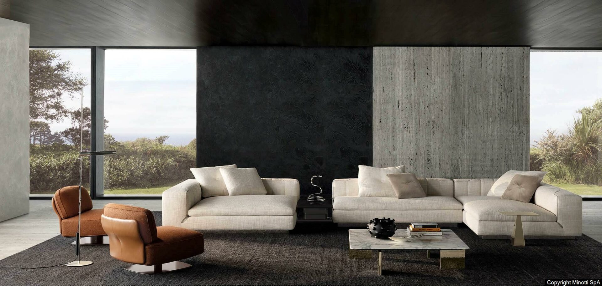 Извилистый геометрический узор определяет индивидуальность системы сидений Riley от Hannes Peer. Обладая вневременной эстетикой, характерной для стилистического языка Минотти, архитектор определяет его как “динамичный и универсальный дизайн, в котором сочетаются две идеально дополняющие друг друга души, сбалансированные между сдержанностью и выразительностью, строгостью и легкостью, постоянством и текучестью. Один из них имеет ярко выраженную архитектурную направленность наружу, в то время как другой более мягкий в интерьере, с яркой декоративной вывеской, приглашающей расслабиться”.