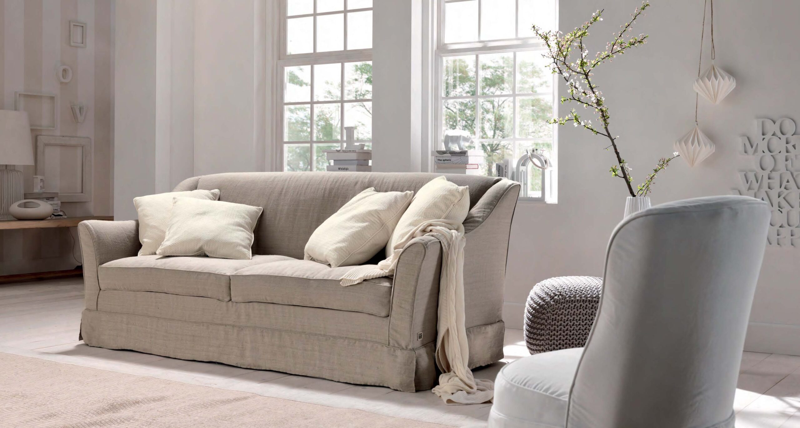 Версии: кресло, 2 места, 2 с половиной места, 3 места, 3 с половиной места, 4 места и модульные версии с углом. Диван 2 места, 2 с половиной места, 3 места, 3 с половиной места, 4 места доступны в версии кровать с электросварной сеткой и матрас из полиуретанового волокна h 13 см. Структура: дерево и его производные, эластичные ремни скрещенные с высокой прочностью. Обивка: пенополиуретан по высоте и качеству дифференцированные, полиэфирные волокна. Особенности: подшипники из нержавеющей стали стандартное перо; с воланом; съемный.