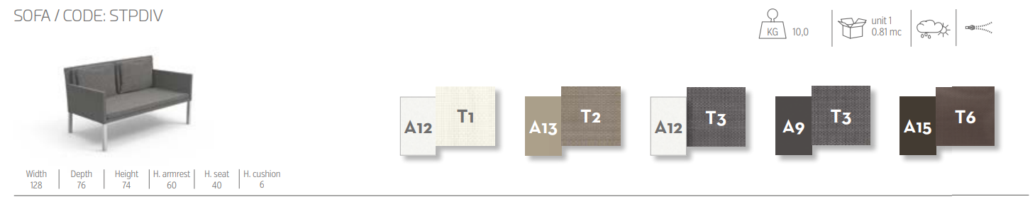 2-местный диван из коллекции Step отличается легкостью во всех отношениях. Тонкая конструкция отличается прочностью благодаря алюминию и удобством благодаря использованию текстиля, легко моющегося и стойкого к атмосферным воздействиям материала, которым также обиты подлокотники и спинка. Длинное сиденье приятно для тела и гарантирует расслабление, создавая идеальную атмосферу для отдыха на свежем воздухе.