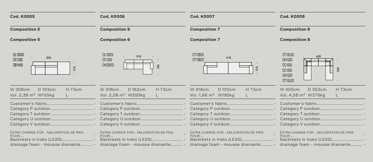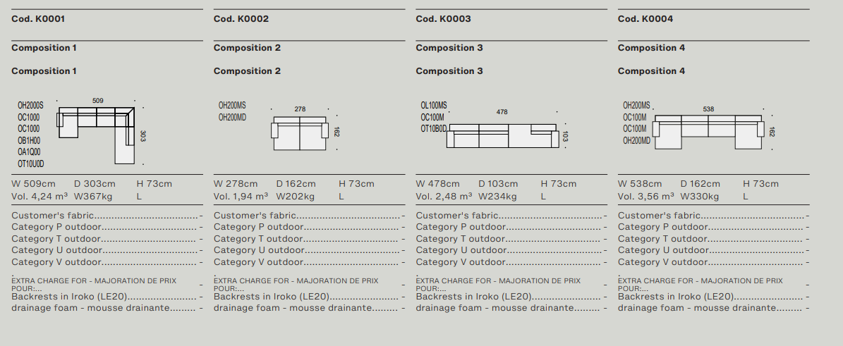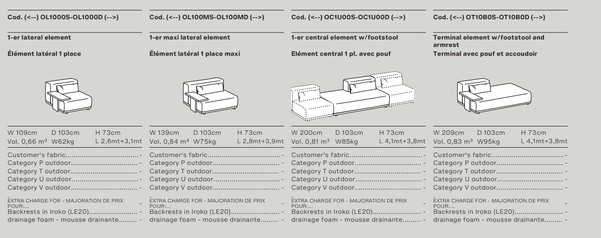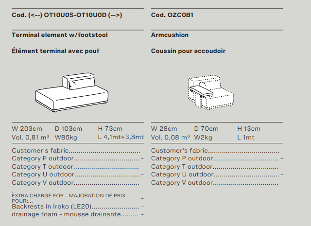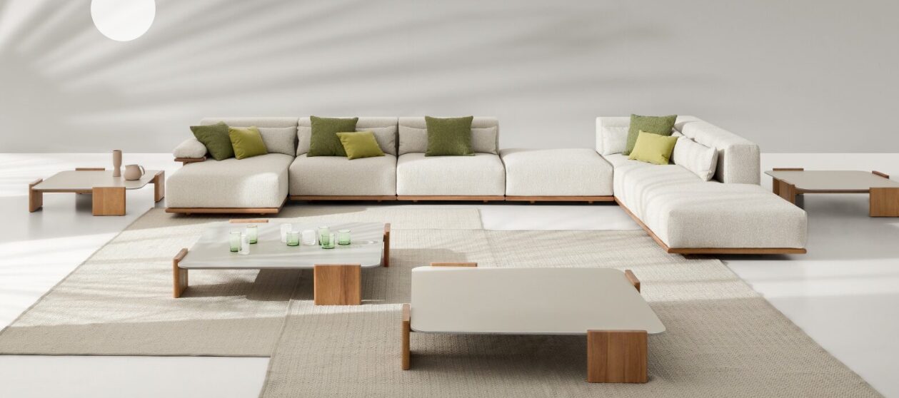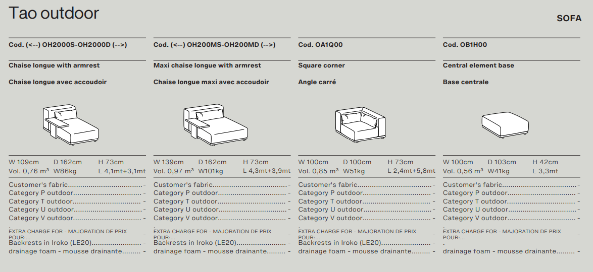 Древесина iroko образует формальную и текстурную основу уличного дивана с откровенной привлекательностью и большой универсальностью. Обтянутый тканью, Tao выделяется своим комфортом и модульностью благодаря различным компонентным элементам, которые определяют его, включая пуфы, шезлонги и журнальные столики двух размеров с мраморными, керамическими или hpl верхами.