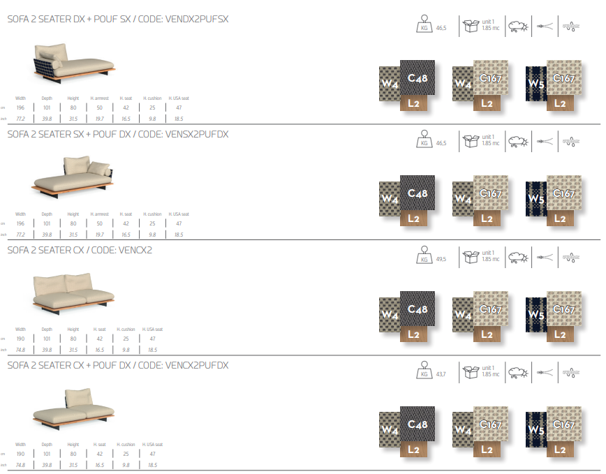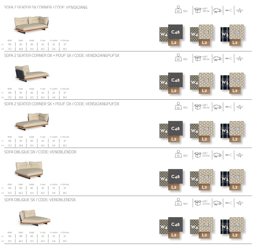 Модульный диван Venice напоминает о лодках, курсирующих по водным путям Венеции, благодаря большим сиденьям, расположенным на деревянных основаниях с плавающей конструкцией. Мягкие линии подушек подчеркнуты, спинки и подлокотники полностью выполнены в морском стиле, а основания из тикового дерева и аккойи напоминают о ремесленной отделке судов. Сочетание этих элементов создает ощущение легкости и очарования, которое распространяется по всему саду. Широкий выбор материалов и множество модульных комбинаций, в которых он доступен, позволяют вам с большой универсальностью адаптировать диван Venice к интерьеру гостиной на открытом воздухе.