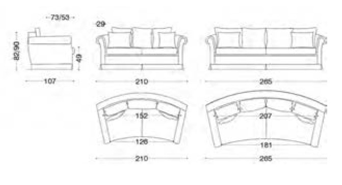 Версии: диван на 2 с половиной места и диван на 3 места. Структура: дерево и его производные, эластичные ремни скрещенные с высокой прочностью. По запросу, поддержка сиденье может поставляться с винтовыми пружинами со стоимостью дополнительный. Обивка: пенополиуретан a дифференцированные квоты и качества, полиэфирные волокна. По требованию, вы можете настроить прокладку с любыми затратами дополнительные. Особенности: профили из нержавеющей стали отделка в стандартной комплектации; готовые подушечки из гусиного пуха со Шнуром в стандартной комплектации; доступен с волан, с открытыми ногами или с бахромой (за дополнительную плату)