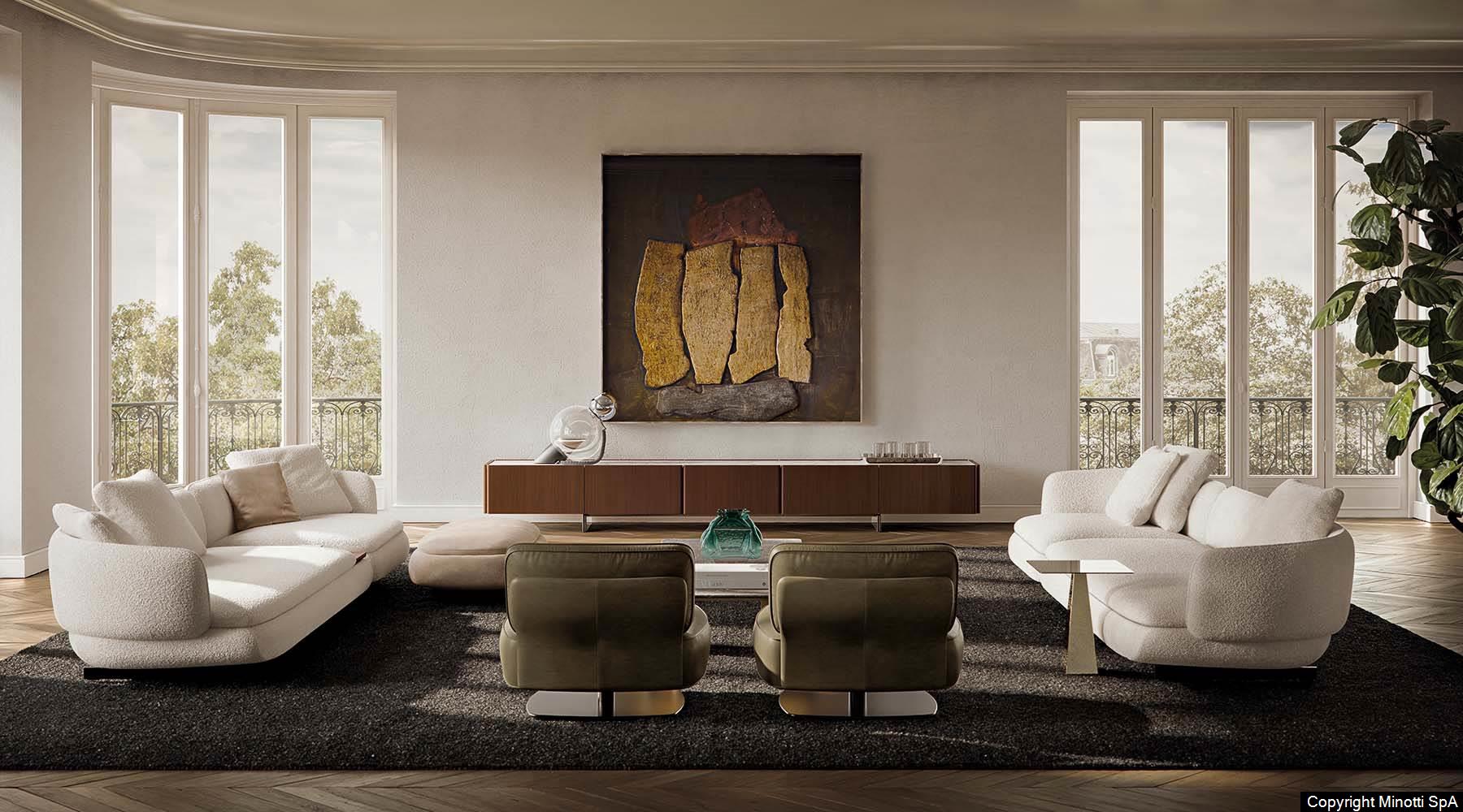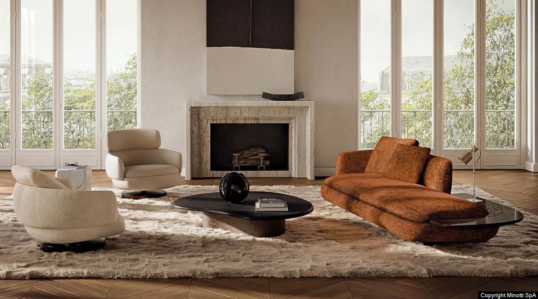 Система сидений Vivienne вдохновлена полукруглой изогнутой спинкой кресла Vivienne, выполненного в современном эстетическом стиле итало-датским дуэтом GamFratesi. Изгиб спинки, который обхватывает сиденье, также выполняет функцию подлокотника, придавая ему особую декоративность. В проекте используется мягкое основание с тонкими контурами, поддерживаемое утопленными алюминиевыми планками, которые удерживают и частично скрывают толщину подушек.