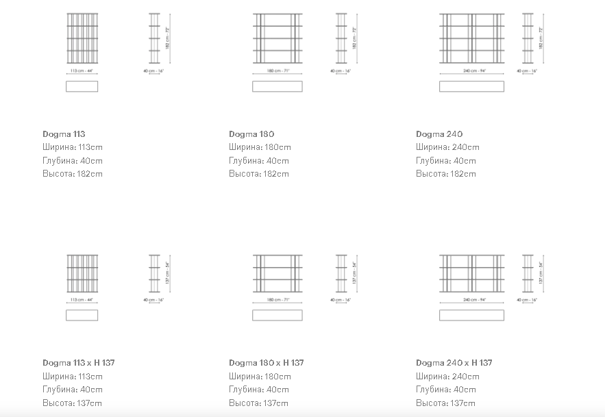 В основе дизайна стеллажа – возможность обыгрывания форм путем комбинации разных модулей для создания самых разнообразных визуальных эффектов. Стеллаж догм строится вокруг базового элемента – стоек, имеющих форму капли и меняющих визуальное восприятие: конструкция становится округлой и мягкой или угловатой и прямолинейной в зависимости от точки обзора наблюдателя. В разделе Догмы представлены три разных способа создания с разным расстановкой между станциями, которые можно объединить на свой вкус, создавая разнообраз-ные комбинации. Эта догма может распространиться среди людей или установиться отдельно во всех помещениях, разделяя их на две части. Возможно, Догма заключается в том, что она передается с помощью варианта американского Ореха (Ночь Каналетто) или углового дуба (Ровере Карбоне) в сочетании с метал-лическими стойками, а также в однозначной версии.