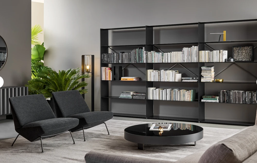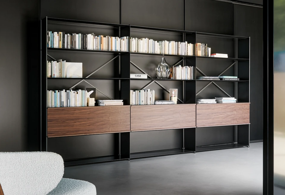 Стэллаж Каос, разработанный Мауро Липпарини, является воплощением идеи, основанной на лаконичности в чистом виде. Лишенный декоративных элементов стеллаж Каос обрамляет пустые пространства, которые заполняются книгами и предметами для создания особого интимного места, являющегося выражением собственной индивидуальности. Алюминиевые полки удерживаются металлическими стойками с небольшими отверстиями, благодаря которым их можно устанавливать. Возможность персонализации обеспечивается комбинацией модулей разных размеров по желанию. Модульная гибкость также реализуется за счет наличия дополнительного деревянной емкости.