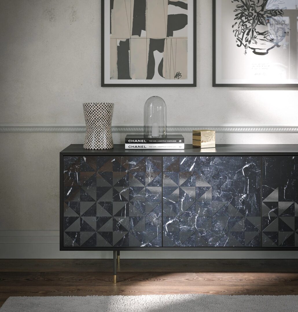 Изготовленная из высококачественных материалов и с кропотливым мастерством, madia Apogeo сочетает в себе структуру ясеня с прочностью и элегантностью мраморных дверей, обработанных геометрическим узором, представляя идеальное сочетание природы и дизайна.