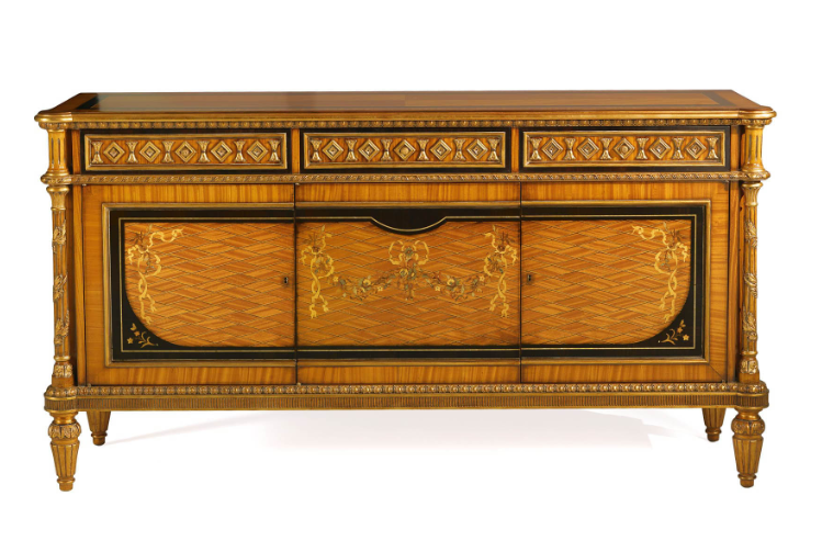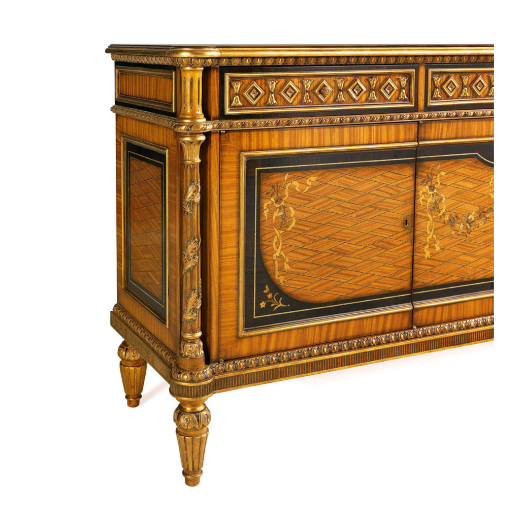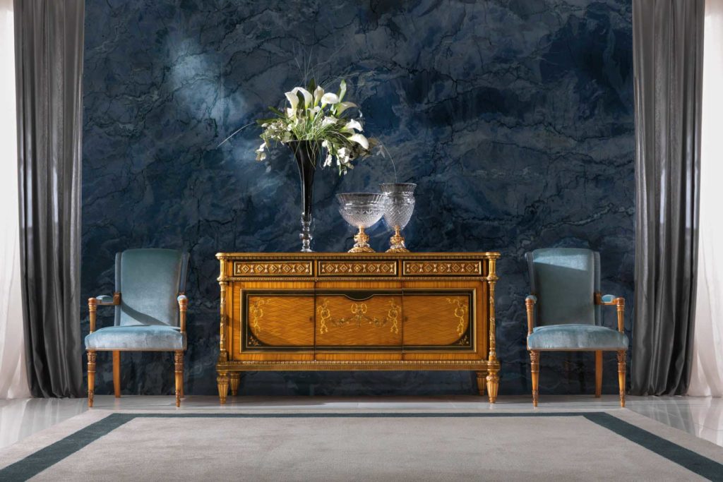 B / 5143-это элегантный буфет в классическом стиле с тремя дверями из цитронье и черного дерева, инкрустированный перламутровыми деталями. Это красивая традиционная мебель, одетая с сочетаниями абсолютной элегантности, к которой мастерство в соответствии с традицией brianzola дает уникальный и личный контакт