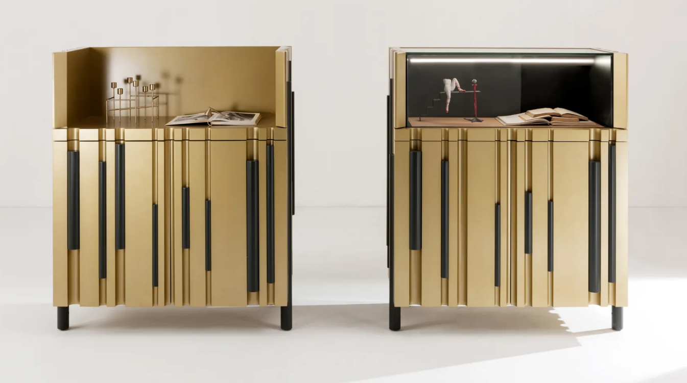 Полностью покрытые лаком натуральным деревом буфеты с чередованием декоративных канавок, которые разграничивают поверхность и подчеркивают ее ярко выраженный рельефный дизайн. Как корпус, так и канавки доступны во всех цветах RAL.
