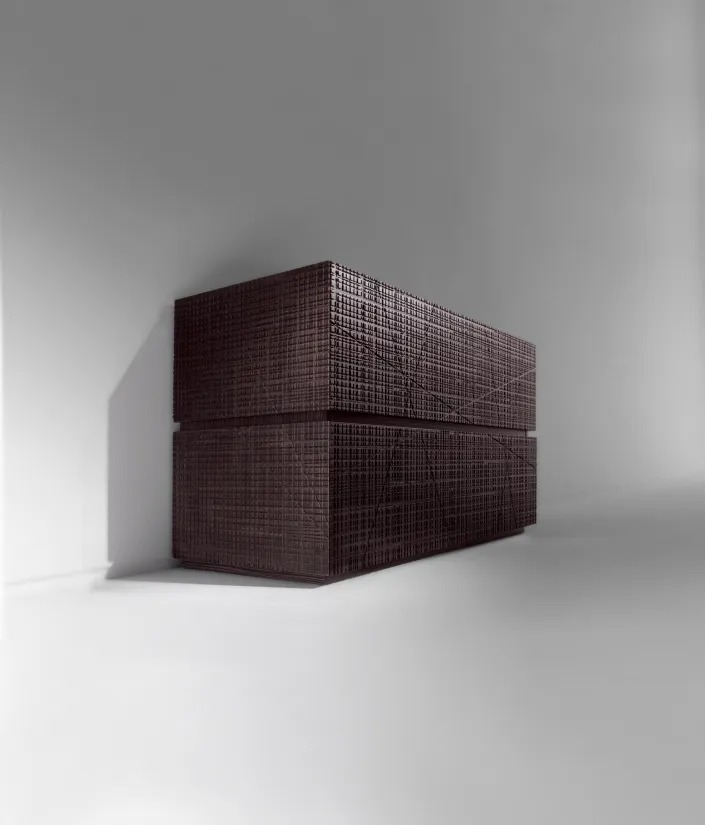 Комод с отделкой из шпона с резьбой Maxima на фасаде и боковинах, оснащенная двумя внешними и внутренними ящиками.