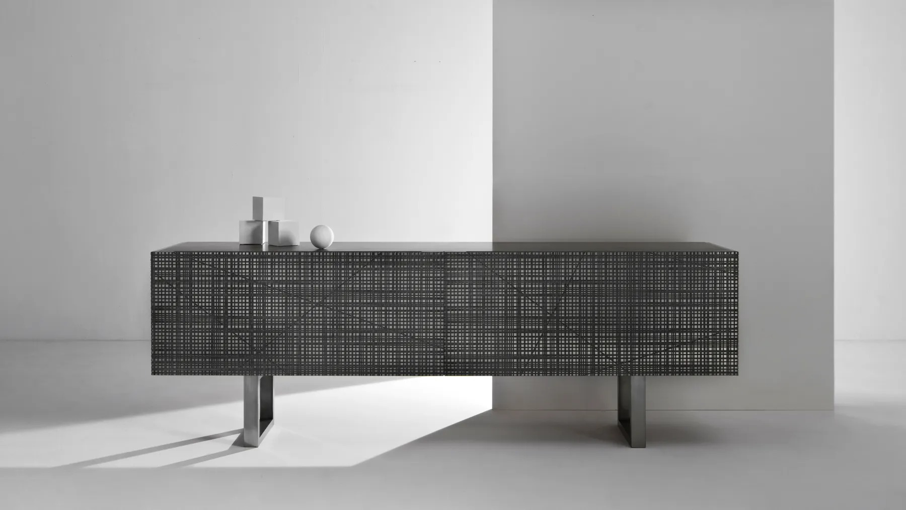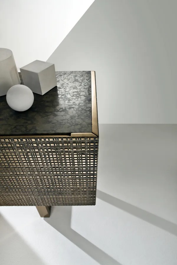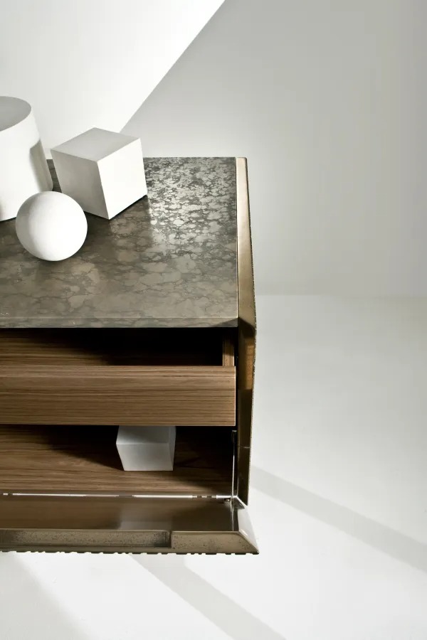 Комод из дерева Maxima с распашными или откидными дверцами и конструкцией с отделкой Жидкий металл. Верхняя панель с отделкой Жидкий металл или из мрамора. Внутренняя отделка из ореха Каналетто.
