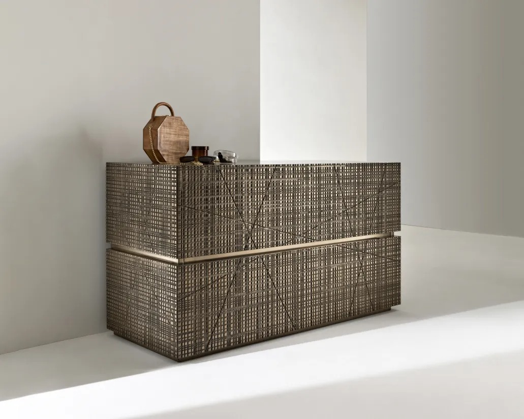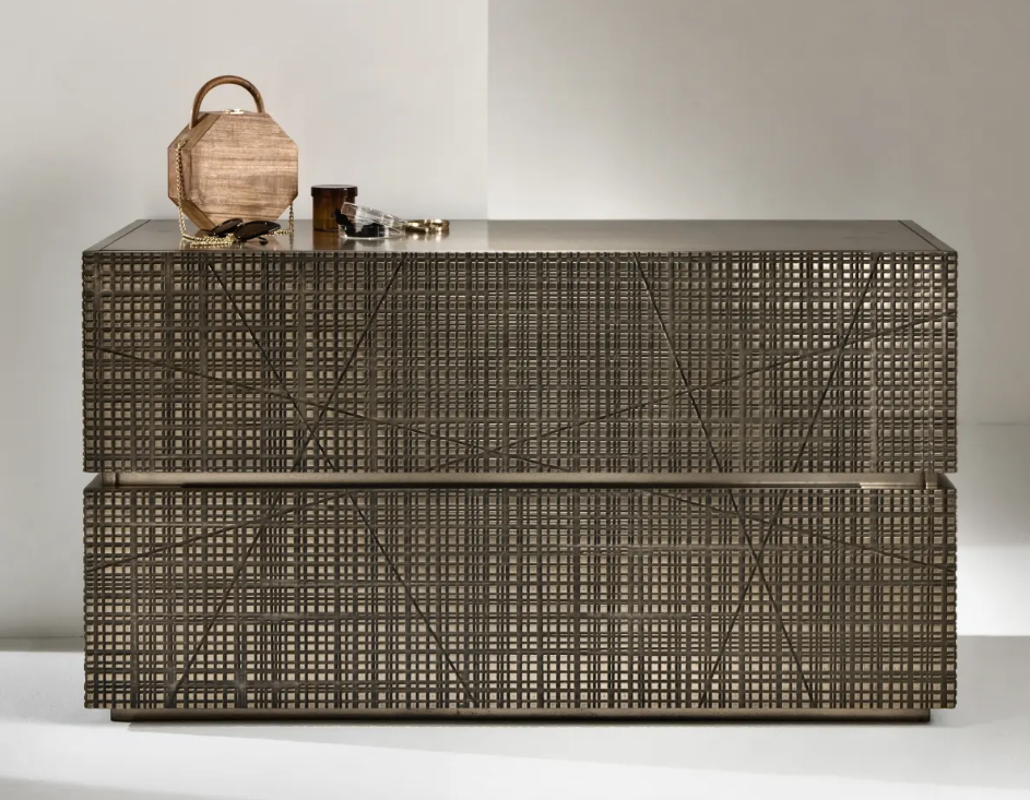 Комод с отделкой жидкий металл и насечками Maxima на боковых и фронтальных панелях
