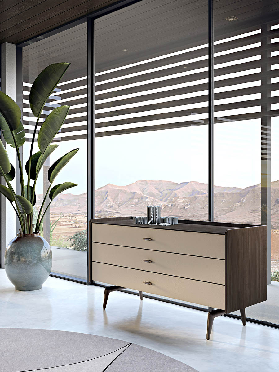 Комод Blues отличается строгой геометрией и утонченными пропорциями, характерными для стиля TURRI. Линейная конструкция из орехового дерева дополнена металлическими деталями, которые придают мебели современный и одновременно классический облик. Каждая линия, каждый изгиб тщательно продуманы дизайнерами фабрики, чтобы создать ощущение баланса и гармонии. Этот комод — настоящее искусство в вашем доме, способное преобразить любую спальню, гостиную или гардеробную.