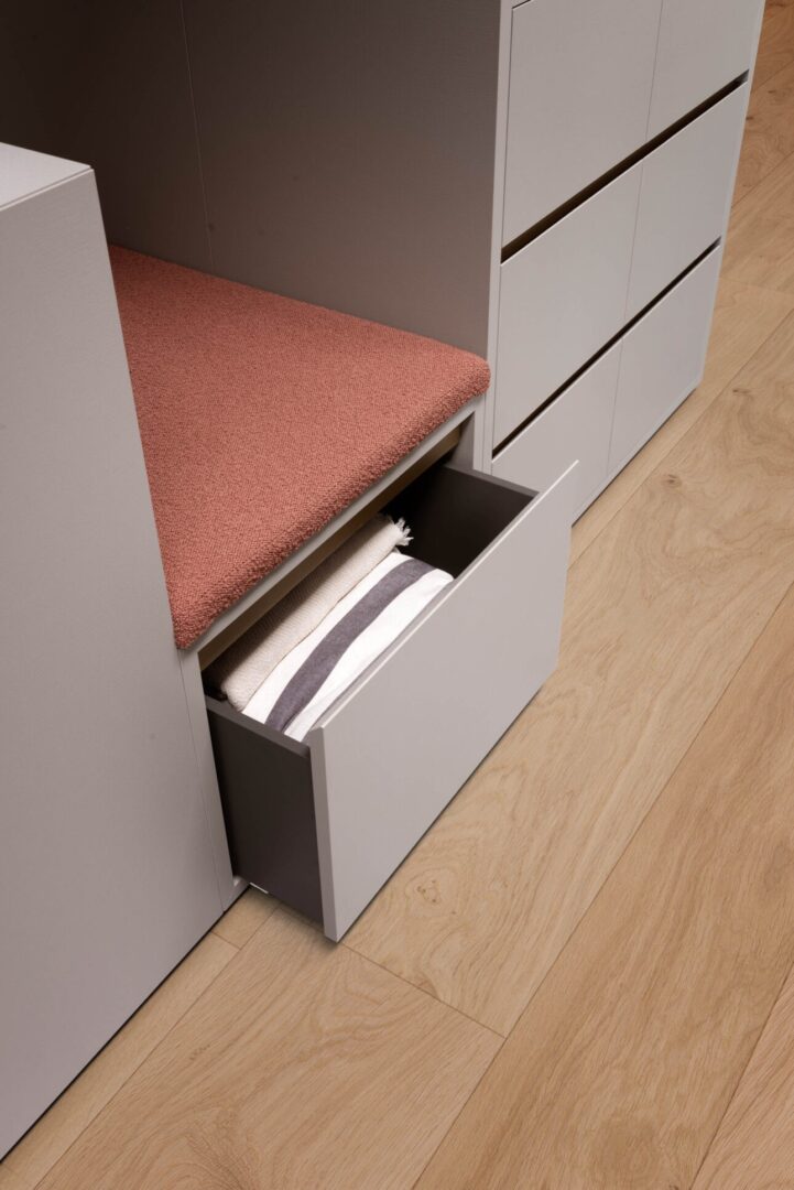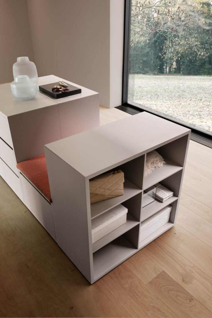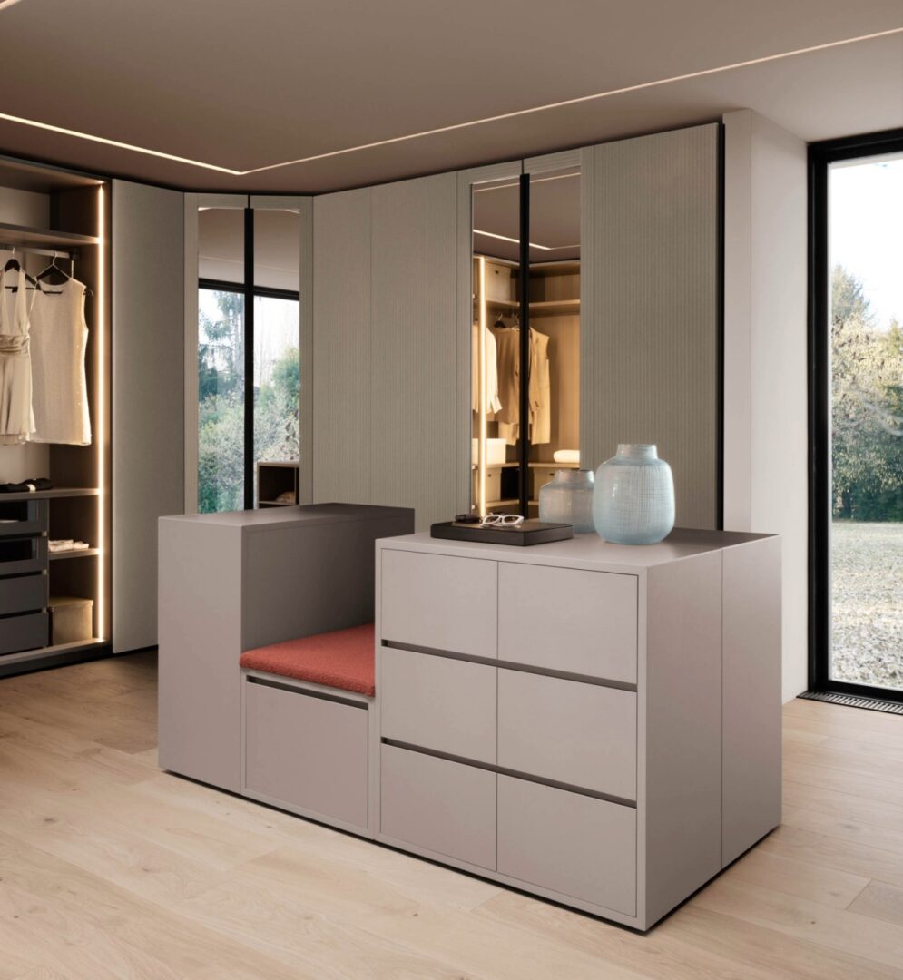 Оборудованный островок Bora Bora — это отдельно стоящий элемент, который дополняет гардеробную зону, превращая ее в функциональное и элегантное пространство.