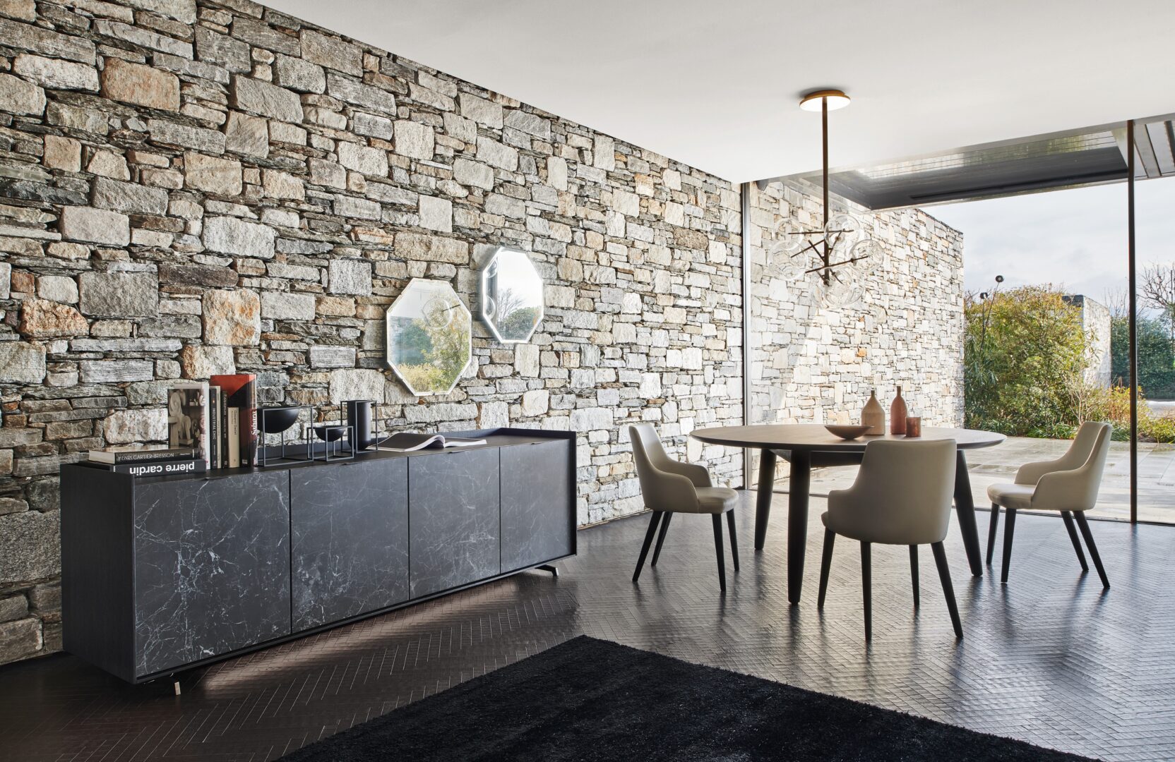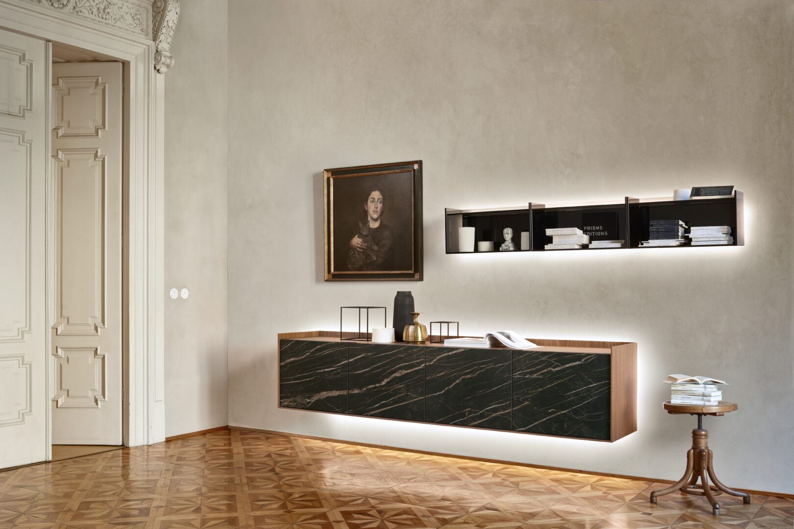 Cabaret Ceramica интерпретирует фарфоровую керамику в современном стиле, одевая основные и модульные формы этого семейства madie с эмоциями материала, который вызывает жилки и цвета Мармо. Этот текстурный Шарм присутствует на фасадах, особенно на распашных створках и ребрах. Это изготовление на заказ, потому что оно изготовлено из уникальной плиты, непрерывно следуя дизайну всей передней части.