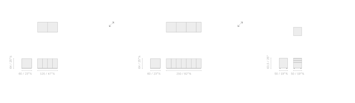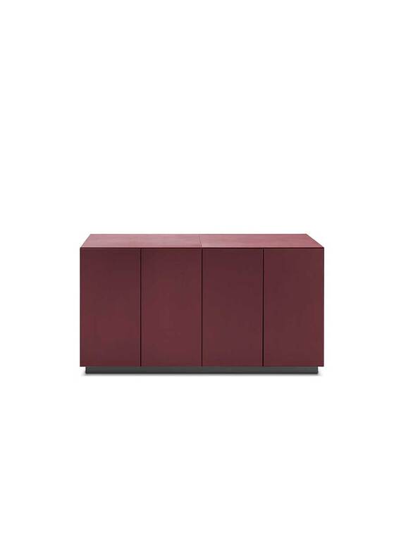 Шкафы для хранения C.E.O. Cube двух разных размеров обиты кожей, а внутренняя поверхность покрыта черным матовым лаком. Передняя часть 210-сантиметровой версии состоит из семи дверей, которые открываются легким нажатием, и четырех отделений с центральной полкой, покрытой черным матовым лаком, в то время как 120-сантиметровая версия имеет четыре двери, открывающиеся легким нажатием, и два отделения с центральной полкой, покрытой черным матовым лаком. Столешницы, боковые стенки и дверцы шкафов C.E.O. Cube обиты кожей Pelle Frau®.