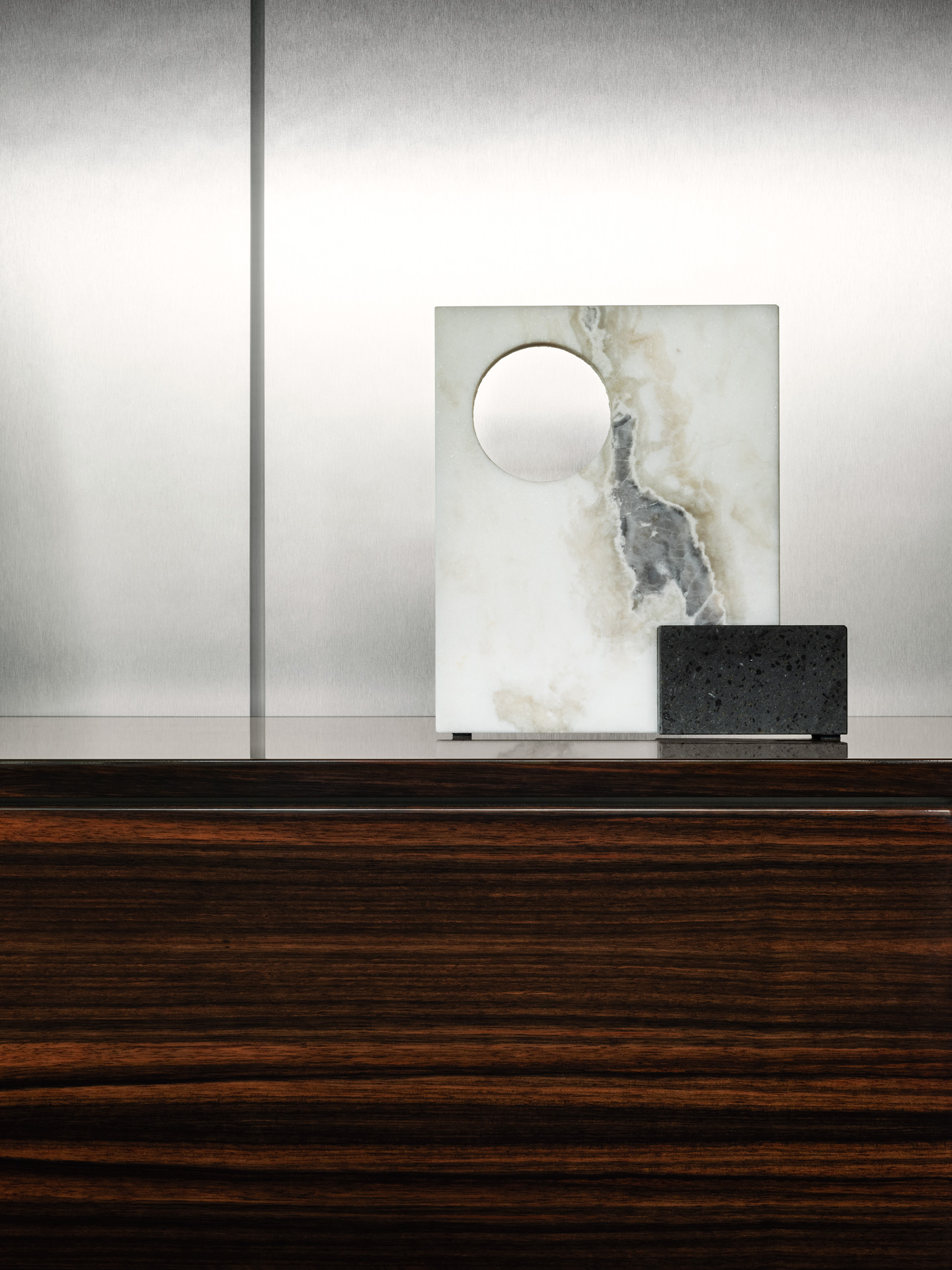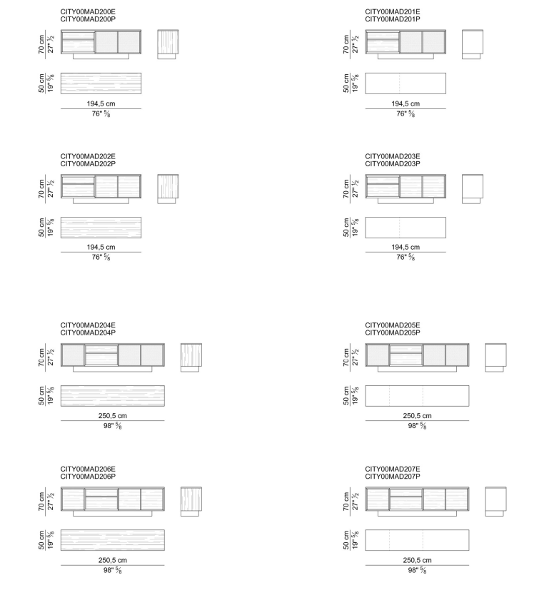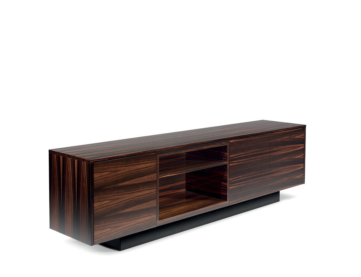 Комод City, имеющий строгие и рациональные линии, подвешенный на лакированном основании с откидной спинкой, — это предмет мебели, обладающий присущей ему функциональностью и отличающийся исключительным качеством, обеспечиваемым изысканным деревянным шпоном. Модульная концепция позволяет вставлять открытый блок между дверями; двери, как и сверху, обтянуты седельной кожей, мягкой кожей или шпонированы деревом.