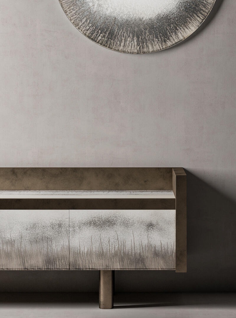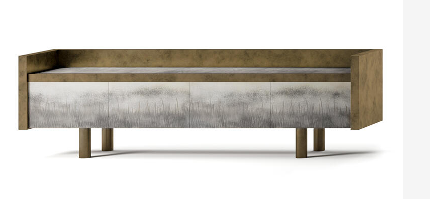 Сервант с четырьмя выдвижными ящиками, открывающийся двумя способами, из фанеры, облицованной МДФ.
