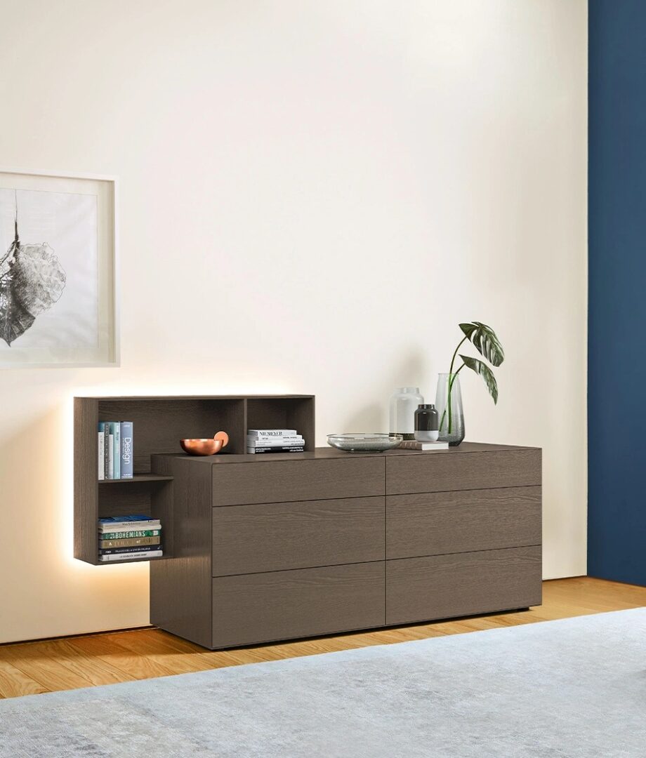 Усовершенствованная система контейнеров с ящиками, в которой отдельные элементы могут быть объединены или наложены друг на друга, чтобы создать универсальную домашнюю архитектуру, которая распространяется по горизонтали и вертикали, играя с различными отделками. Композиции могут быть с опорой на землю или с элегантными металлическими ножками.