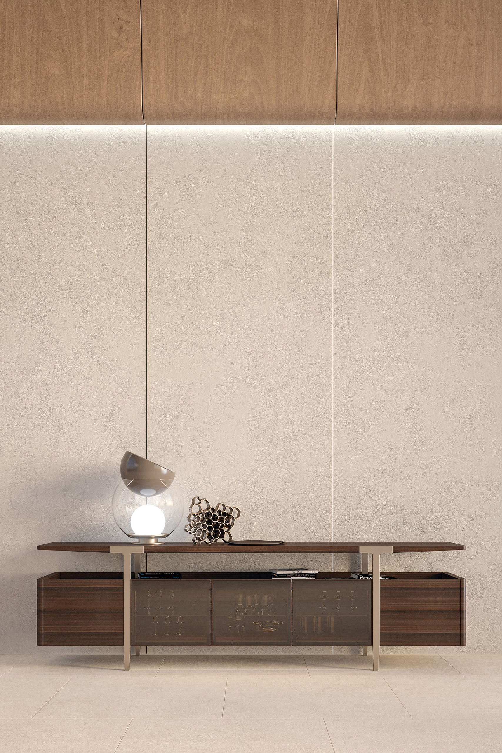 Итальянский комод Domus от фабрики TURRI — воплощение элегантности и инновационного дизайна. Модель отличается уникальной конструкцией: корпус словно парит между металлическими ножками и столешницей, создавая эффект легкости. Возможны варианты отделки — дерево или мрамор для столешницы, а также деревянные или комбинированные со стеклом дверцы. Каждый элемент выполнен с безупречным итальянским качеством, что делает комод стильным акцентом в интерьере.