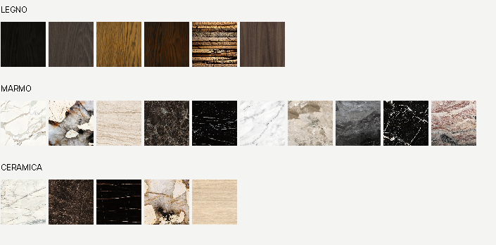 Доступен с отделкой столешницы из мрамора, дерева или керамики, что подчеркивает итальянское внимание к деталям и качеству материалов. Идеальный выбор для тех, кто ценит современный дизайн с художественным подходом.