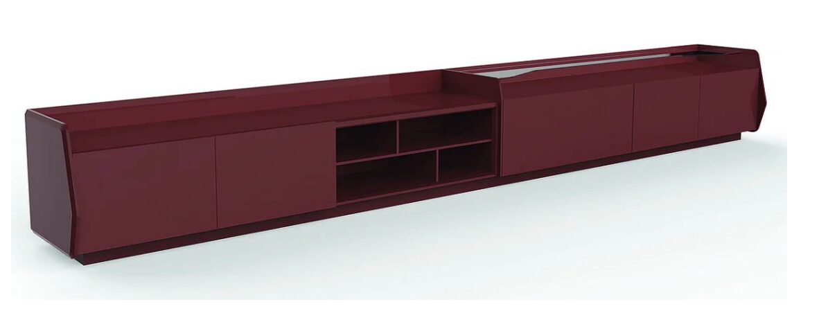 Шкаф для хранения из полированного или матового лакированного дерева.