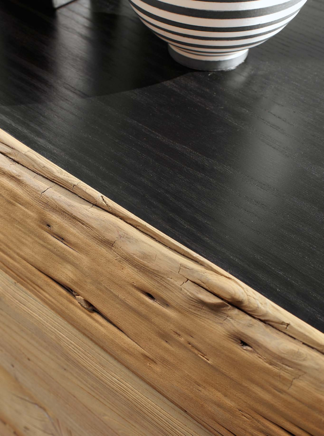 Naturedesign использует исключительно премиальные материалы, прошедшие строгий отбор. Ясень с глубокой черной отделкой сохраняет естественную текстуру, а дерево Secolare, известное своей прочностью, придает комоду особую изысканность. Металлические элементы покрыты матовым составом, устойчивым к царапинам и коррозии, что гарантирует безупречный вид на долгие годы.