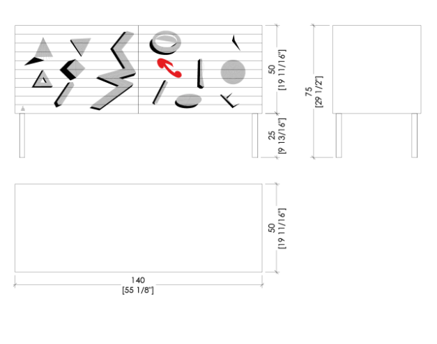 Комод с ножками из брашированного металла, c дверцами и корпусом с инкрустацией. Дверцы с открыванием нажатием push-pull и наличие внутренней полки. Доступна также в настенном варианте.