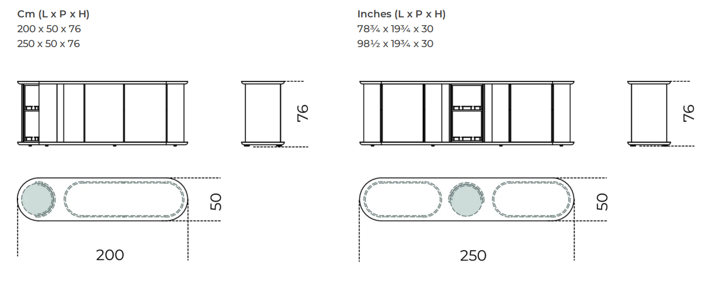 Контейнер со структурой, полками, дверцами и полуцилиндровым вращающимся деревом из полированного или матового лака. Доступные цвета: «белый Камарг», «песок Нила», » розовый Джайпур”, «Красный Персия», «Бордо Этрурия», «зеленый Прованс», “Тихоокеанский синий”, “серый Лондон”, «черный Гиза». Детали из матовой латуни. Контейнер с дверью push and pull с внутренней полкой из лакированного дерева в той же отделке. По запросу версия с двусторонним открыванием створки.