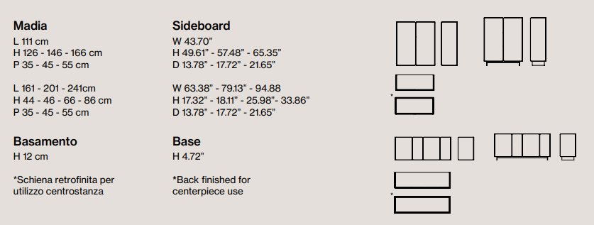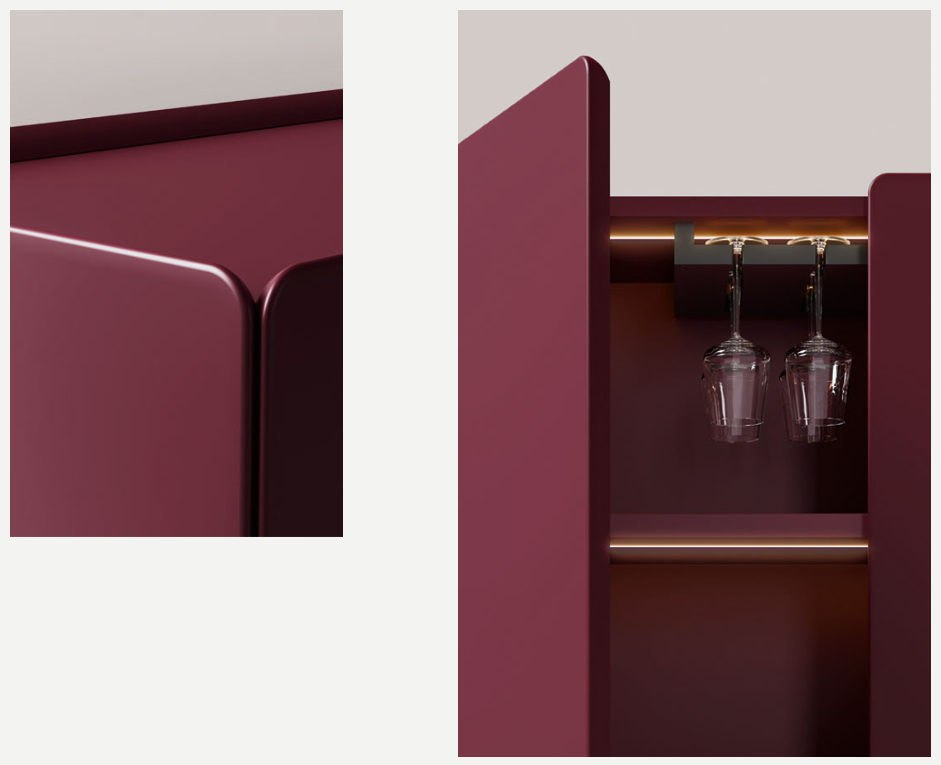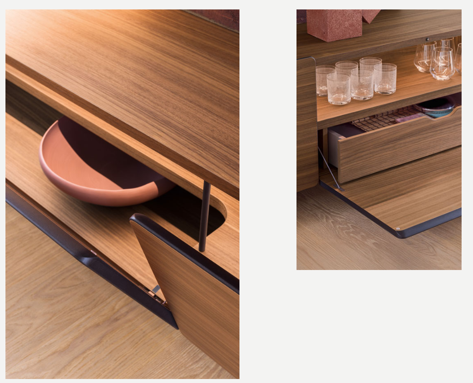Он получил свое название от одноименного семейства журнальных столиков и вдохновлен итальянским дизайном 1950-х годов и теми же изогнутыми деталями в своем силуэте. Ярко выраженная передняя дверца возвышается над корпусом серванта, плавно скругляя углы, благодаря открытому коническому и округлому внутреннему профилю. Существует множество размеров и вариантов интерьера, таких как выдвижные ящики, подставки для бокалов и бутылок, а также внутреннее освещение. Существует широкий выбор индивидуальных вариантов отделки и покрытий.