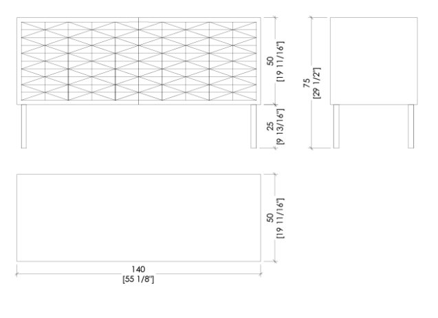 Комод с ножками из брашированного металла, с дверцами с инкрустацией и шпонированным корпусом. Дверцы с открыванием нажатием push-pull и наличие внутренней полки. Доступна также в настенном варианте.
