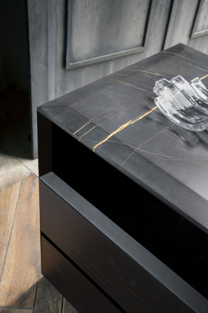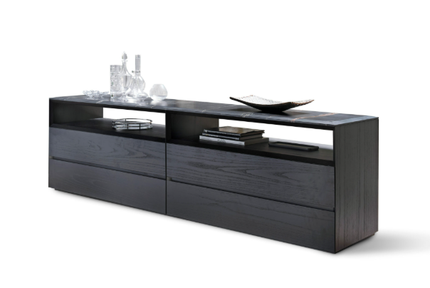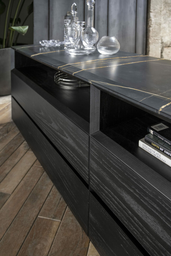 Элегантный сервант Manhattan, вдохновленный архитектурным очарованием небоскребов в одноименном районе Нью-Йорка, может похвастаться внушительной конструкцией, полностью выполненной из массива дерева, дополненной пазами, которые обеспечивают безупречный доступ к выдвижным ящикам под углом 45 градусов.