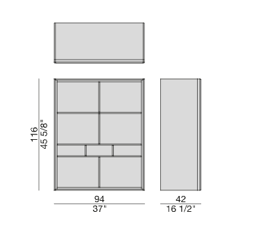 Коллекция Matics состоит из нескольких элементов: шкафа Matics 1, тумбы Matics 2 и серванта Matics 4. Matics 1 предлагается в открытой версии или со стеклянными дверцами Stopsol super silver light. Задние панели могут быть выполнены из дерева, металла с текстурированной бронзовой отделкой или Cuoio в цветах коллекции. Интерьеры оснащены встроенной светодиодной подсветкой.